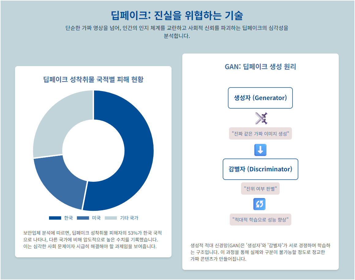- 개인 피해: 딥페이크 기술이 개인을 겨냥해 사용될 경우, 그들은 허위 증거에 맞서 싸워야 할 위험이 있습니다.