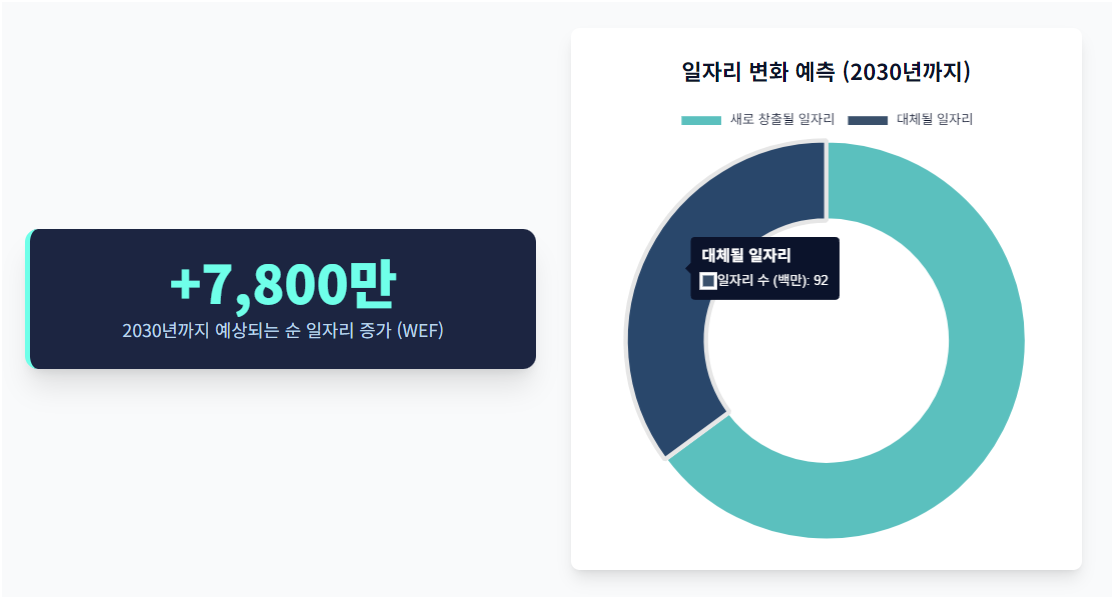 - McKinsey Global Institute는 2030년까지 4억에서 8억 개의 일자리가 AI로 인해 사라질 수 있다고 추정.